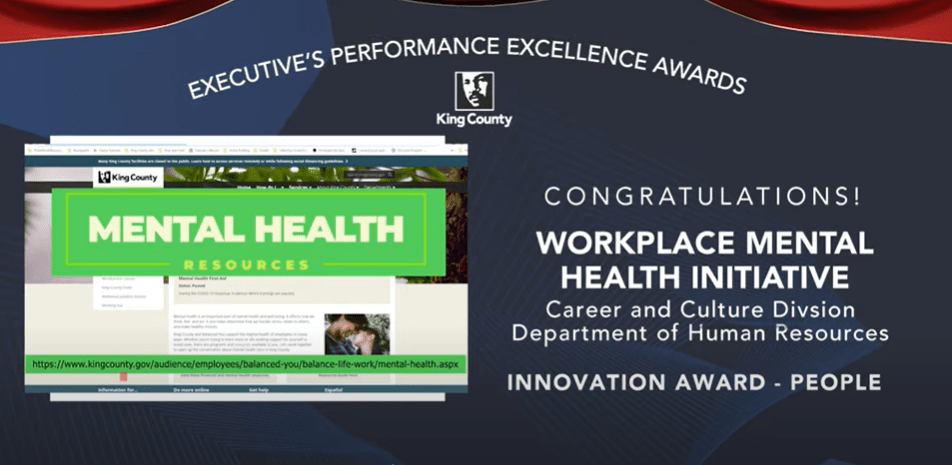 “With the twin public health crises of COVID-19 and racism, it became imperative that we were taking care of not only the physical health of our employees, but their mental health as well,” shared Whitney Abrams, Chief People Officer of King County.