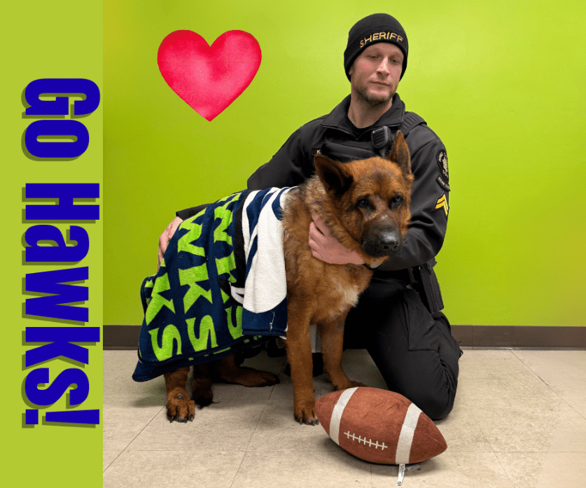 Regional Animal Services of King County (RASKC) and the King County Sheriff’s Office (KCSO) have launched a new “paw-tnership” to help spread the word about animals in need of homes. A recent photo shoot, with results posted on social media, highlighted “Papa,” a nine-year-old German Shepherd who is currently in a foster home.