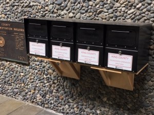 Drop boxes are a low-tech solution that fell out of favor in the internet age. But the Facilities Management Division (FMD) resurrected these relics from the past to serve customers safely while King County buildings remain closed due to COVID-19. In spring 2020, FMD installed nine new drop boxes in collaboration with Treasury, Records and Licensing, Assessments, and Metro. The boxes typically average 100-150 parcels per week, and that number skyrockets up to 350 parcels a week during tax season.