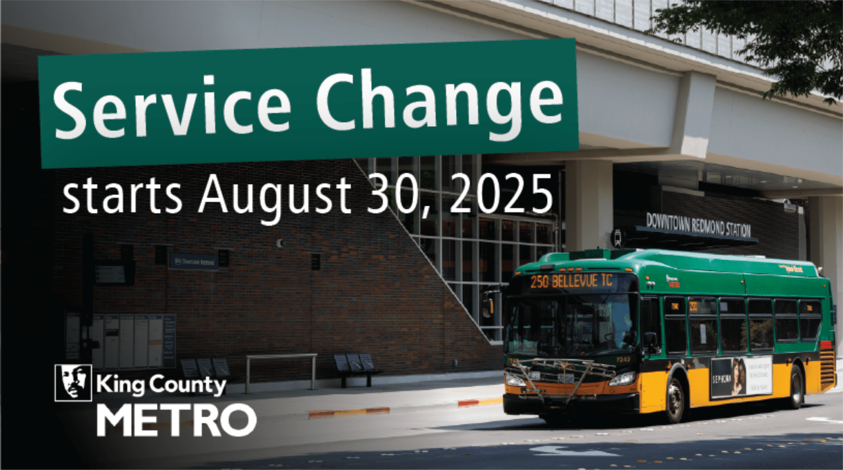 Another boost in King County Metro bus service begins Aug. 30. New and improved routes will better serve Eastside communities and help facilitate connections to Sound Transit’s 2 Line light rail stations. Metro also is adding bus service in Seattle on Route 106 funded by the voter-approved Seattle Transit Measure. On-demand service Metro Flex is expanding to Bellevue on Sept. 15. Read more.