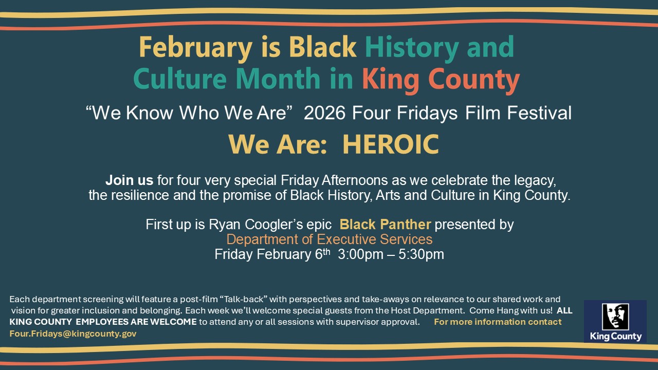 - Feb. 6: Black Panther, We are Heroic, Hosted by the Department of Executive Services