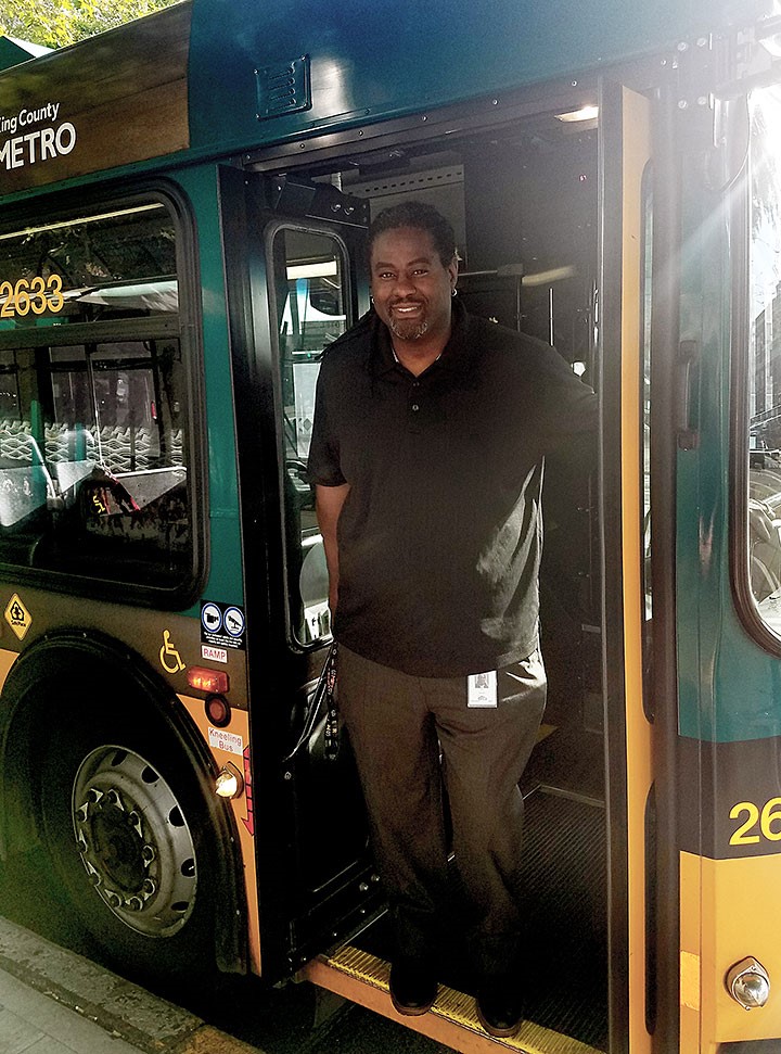 Deputy General Manager Terry White has several options for his transit commute. He lives in the Soos Creek area south of Renton, and likes to walk north to Fairwood to catch Route 102 into Seattle – or walk south about the same distance to catch Route 157. Either walk is about one and a half to two miles, so he gets a little exercise. He may also drive north to the Renton Highlands and take the Route 111 or Route 114 bus.
