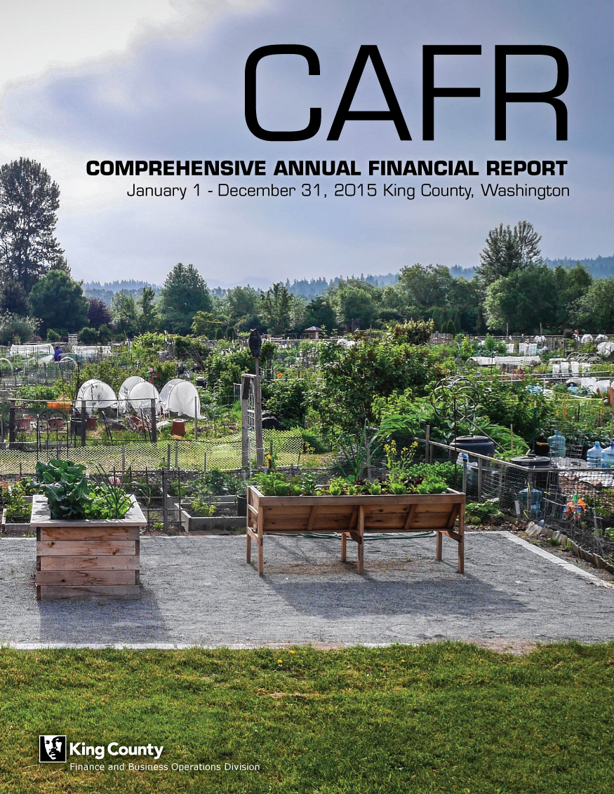 King County’s 2015 Comprehensive Annual Financial Report (CAFR) is available for viewing on the web. A condensed, easier to read synopsis of the county’s financial condition is also available. This is titled the Popular Annual Financial Report (PAFR).
