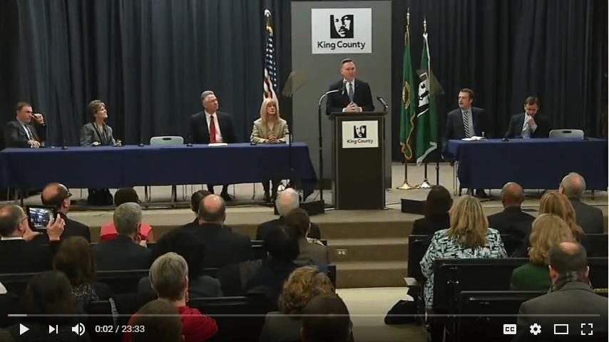 At a special meeting of the Metropolitan King County Council on February 10 at White Center Heights Elementary School, Executive Constantine framed his policy agenda for meeting two of the “greatest generational challenges” of our time: building equity and opportunity, and confronting climate change –