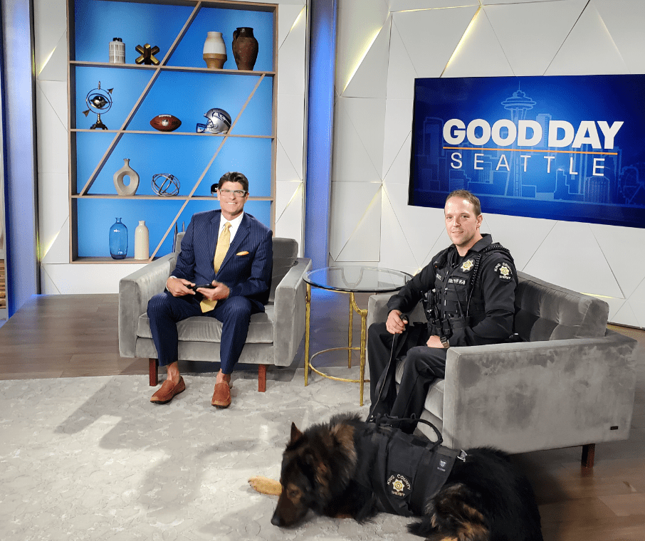 KCSO Deputy/K9 Handler Sam Sare and his partner Chuck made their TV debuts on both KOMO TV (the Arc) and Good Day Seattle on Q13.