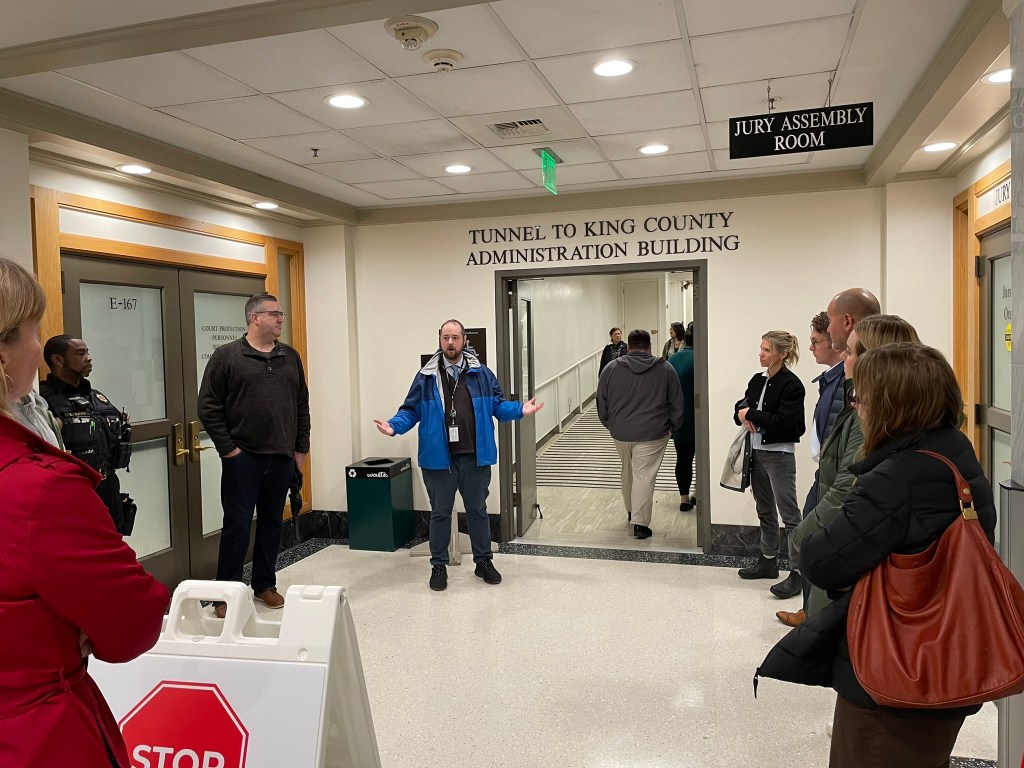 The tour, led by Facilities Management Division Deputy Director of Operations Drew Zimmerman, was part of efforts to create safe, more welcoming environments around King County facilities in downtown Seattle and across the county.