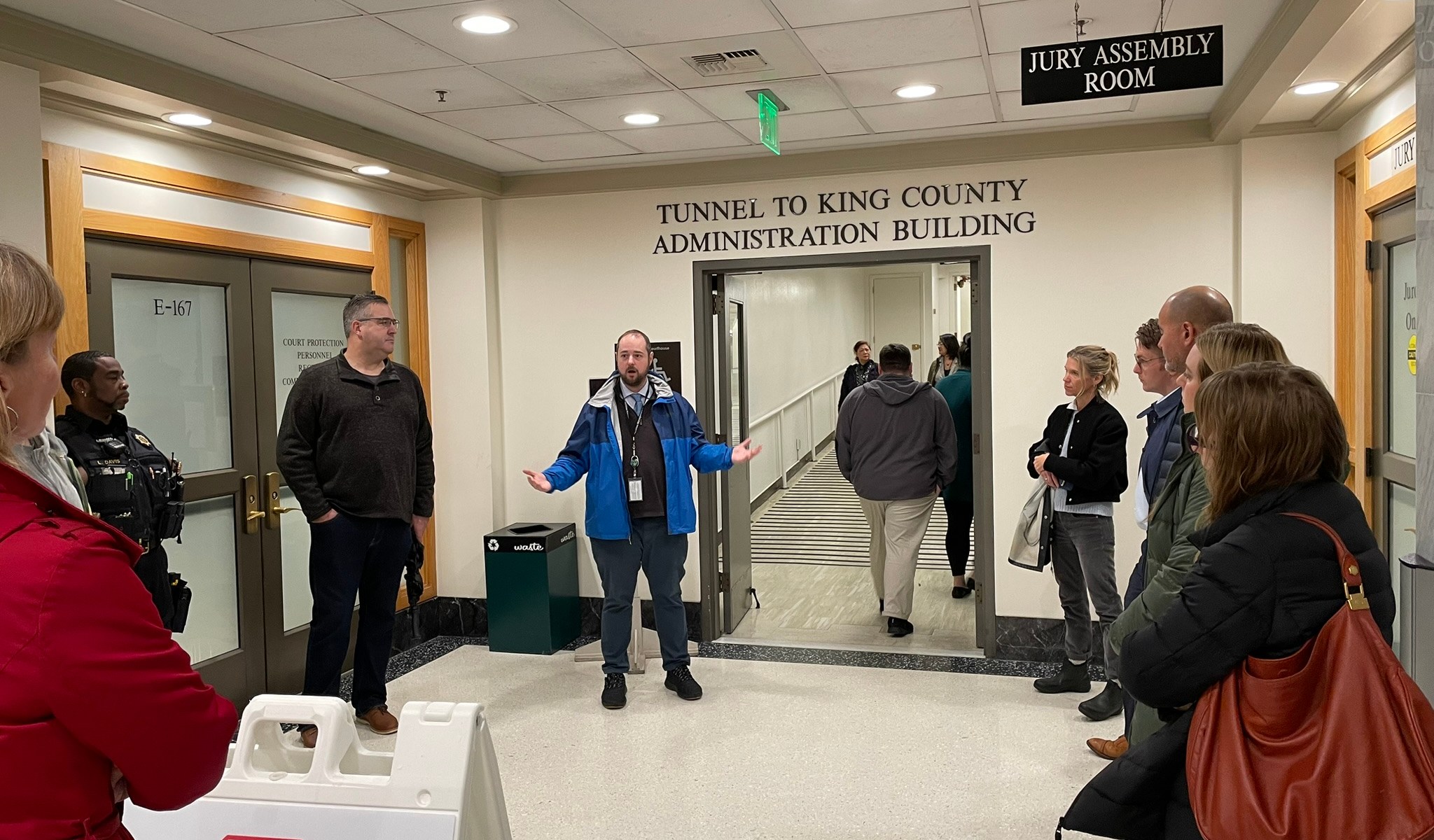 The tour, led by Facilities Management Division Deputy Director of Operations Drew Zimmerman, was part of efforts to create safe, more welcoming environments around King County facilities in downtown Seattle and across the county.
