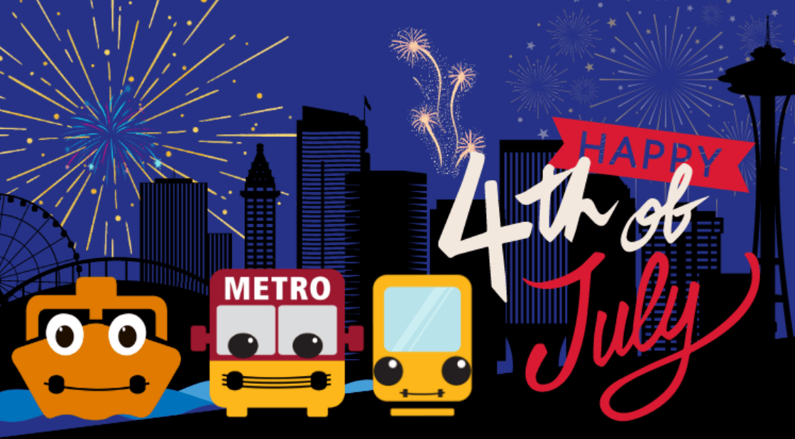 Crossposted from Metro Matters Fireworks, parades, picnics and festivals on July Fourth — there’s so much going on! Here’s some things to know before stepping onto transit on July 4 to get to your celebration. King County Metro buses are operating on Sunday schedules on July 4 and there are reroutes planned in several areas due to events, such as parades and local festivals in Bellevue, Bothell, Burien, Issaquah, Kent, Kirkland, West Seattle and downtown Seattle. Please check our service advisories for your route before traveling. Seattle Streetcar The First Hill Line will operate regular service July… Read More