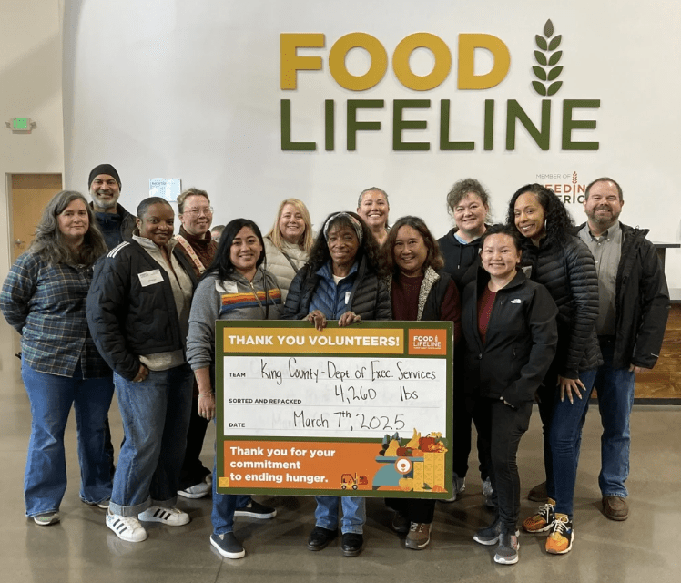 Crossposted from the DES Express Thirteen employees from the Department of Executive Services (DES) Director’s Office sorted and repackaged nearly 4,300 pounds of baked goods at Food Lifeline recently. That’s a lot of dough! The Director’s Office has volunteered at Food Lifeline for four consecutive years as a team-building activity and to give back to the community. Food Lifeline’s mission is to feed people experiencing hunger today while working to end hunger for tomorrow. Groups of volunteers sort and repack food at their Seattle warehouse in two-hour sessions, helping feed people facing… Read More