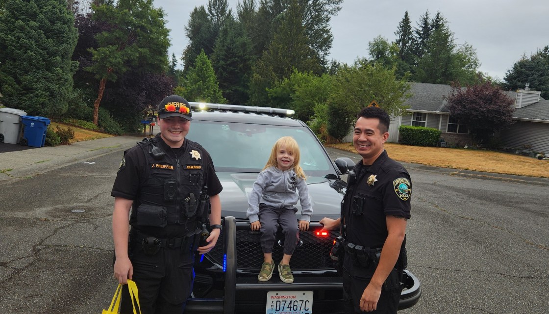 Crossposted from the KCSO Employee newsletter A request came in to the Comm Center to have a Deputy come by a home in Covington as a surprise for a child’s birthday. Though this is a little bit of an unusual call for service Deputy Welch, Deputy Luu and Deputy Pfeiffer jumped at the chance to handle the call. They went out and presented some Covington swag to the young man to help celebrate his birthday. You can see by the smile on his face that he enjoyed his chance to meet some… Read More