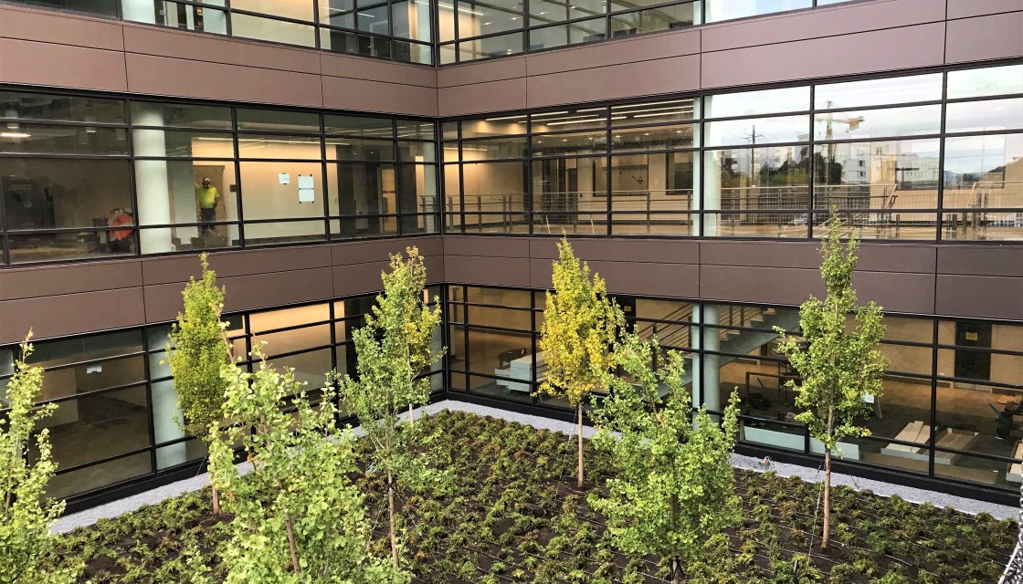 The recent installation of the rain garden and green roof are the latest milestones at the Children and Family Justice Center. The eco-friendly design and landscaping support the County’s climate change priorities. In addition to being beautiful, the rain garden is one of many sustainable features that will retain run-off stormwater. The garden’s landscape showcases Princeton Sentry trees, Barrenwort plants, and Mexican beach cobble stones around the perimeter of the garden. A unique characteristic to the garden are rain chains, a functional and modern alternative to traditional gutter downspouts. Visitors and staff… Read More
