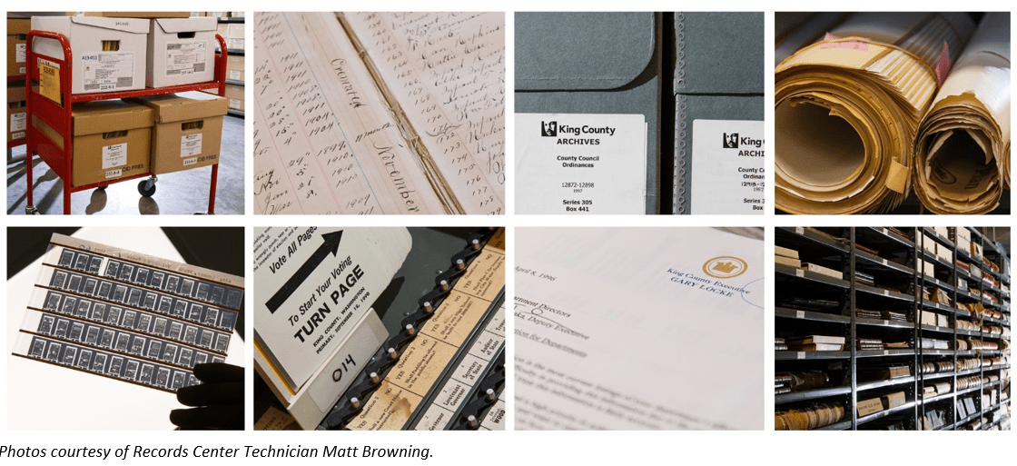 October is Archives Month, and King County Archives wants you to celebrate with us. We’re offering county staff tours of our beautiful space, including the areas where we store and preserve historically significant county government records. What is Archives Month? Many people don’t realize that the historical county government records at King County Archives are publicly accessible. Archives Month is a reminder to explore and make use of them. Preserving government records is essential for promoting democracy and government transparency. Read more.