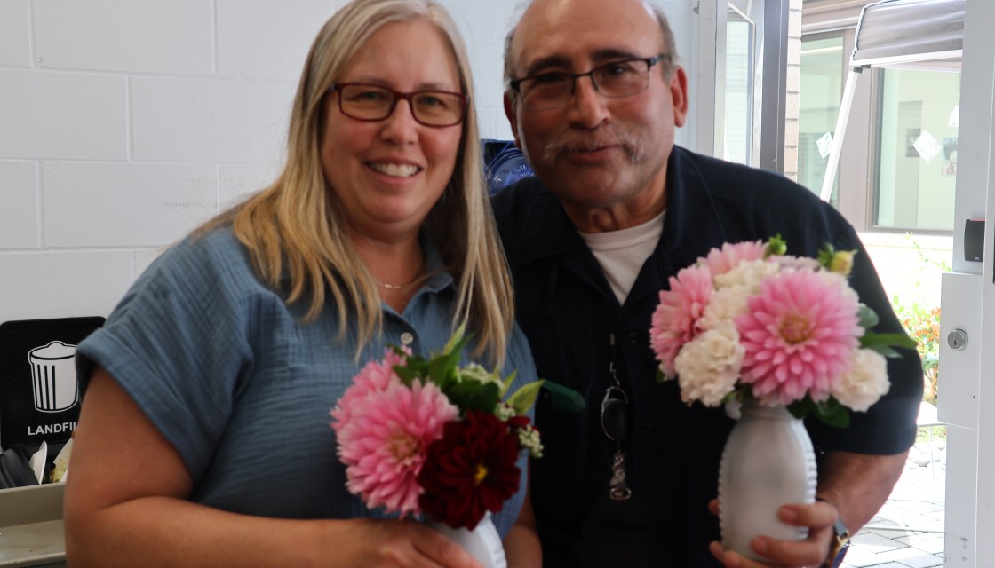 Crossposted from the DAJD Employee Newsletter For two decades, José Reynaga has been a dedicated custodian for King County, ensuring that the Patricia H. Clark Children and Family Justice Center (CCFJC) remains safe, clean, and welcoming every day. Beyond his essential custodial work, Reynaga has nurtured something extraordinary that brightens the lives of everyone around him: His passion for gardening and flowers. Read more. Pictured: Miae Aramori, left, and José Reynaga, right, showcasing two of Reynaga’s beautiful floral arrangements at a recent CCFJC staff appreciation event.