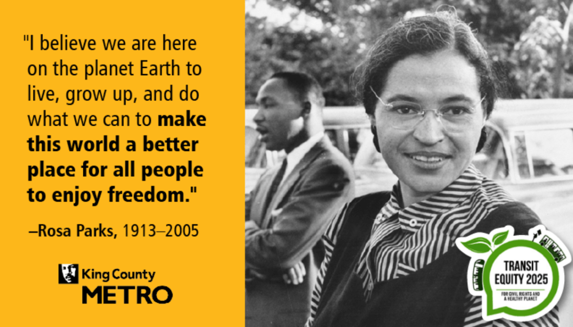 Crossposted from Metro Matters Feb. 4 was Transit Equity Day, a time to recognize the vital role public transit plays in advancing social and economic justice. Metro is proud to support the Labor Network for Sustainability’s mission to ensure transit is safe, reliable, environmentally sustainable, and affordable for all. Observed annually on Feb. 4, Transit Equity Day also honors the birthday of Rosa Parks, whose courageous act of defiance on a Montgomery bus in 1955 became a turning point in the civil rights movement and a lasting symbol of the fight for transit… Read More