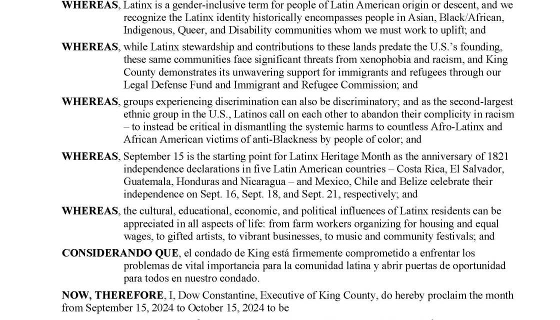 Executive Constantine proclaims 2024 Latinx/Hispanic Heritage Month