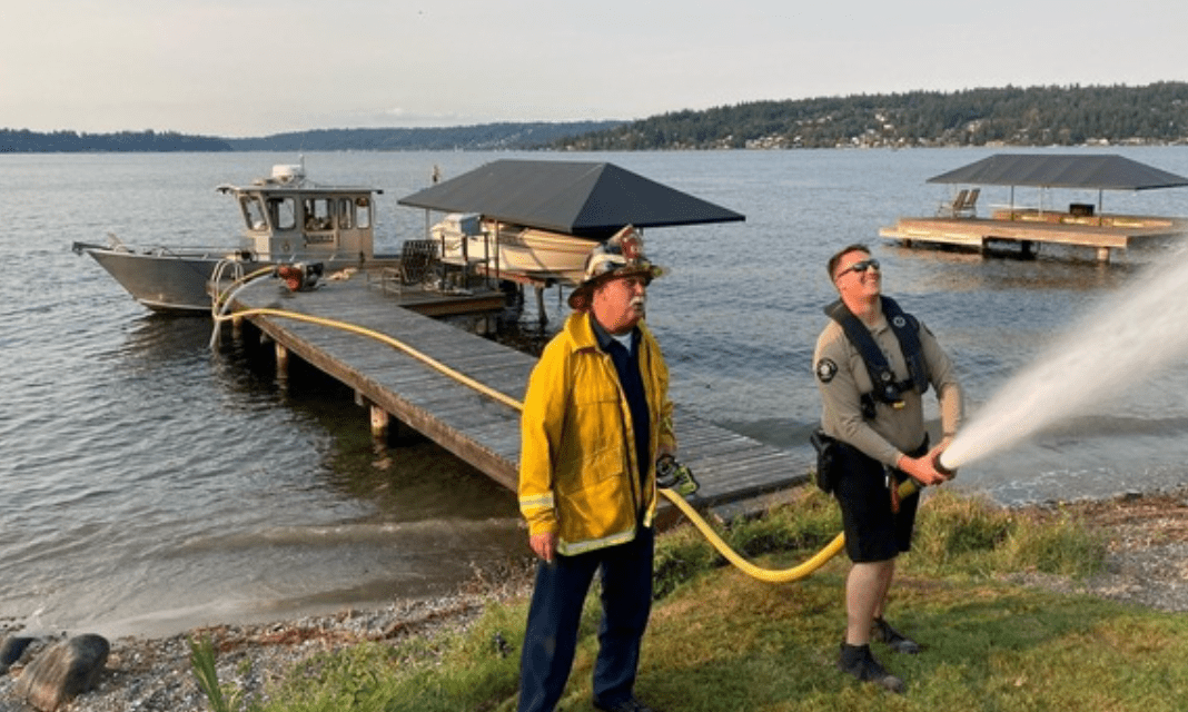 Crossposted from the KCSO Newsletter On the evening of Sunday, Aug. 6, just before 7 p.m., Marine Unit Deputy Matt Martin and Deputy Alex Thomas were making a routine patrol and safety check on Lake Sammamish. During their rounds, they observed a significant plume of smoke forming along the lake’s western shoreline. Sensing a potential danger, Deputies Martin and Thomas went to investigate and located the beginnings of a small brush fire. Responding promptly, they moored their Marine boat at a dock and immediately acted, utilizing both lake water and their equipment… Read More