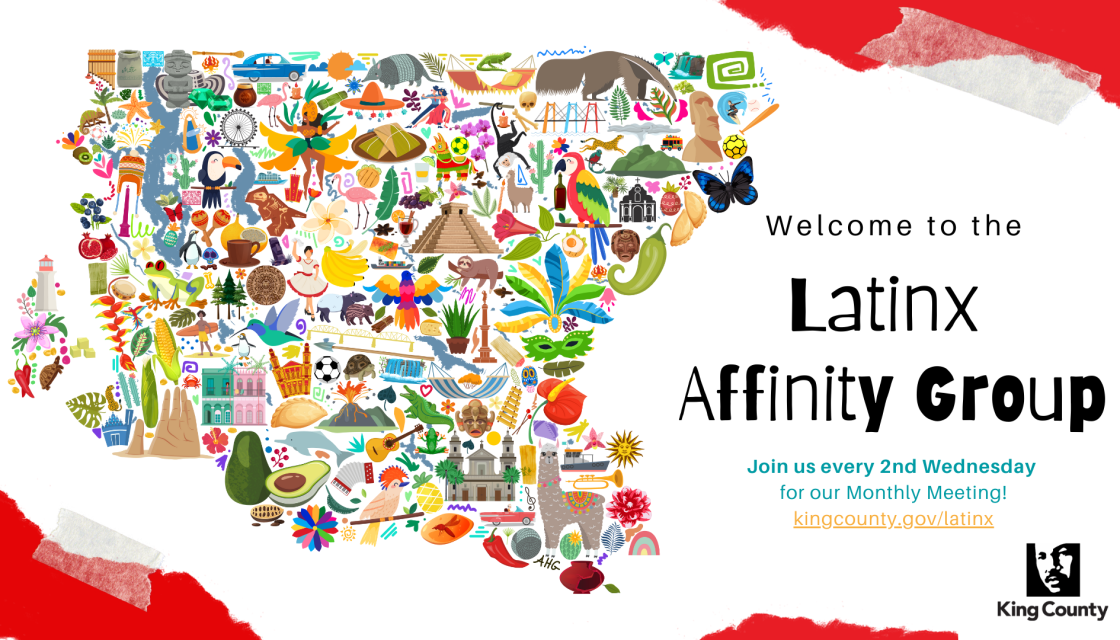 The King County Latinx Affinity Group Leadership Team developed a short survey to better understand the needs of King County Latinx employees. Survey results will help define Latinx Affinity Group priorities and activities. King County employees who identify as Latinx, or of Latin American origin or descent, are encouraged to complete the survey by 5 p.m. on March 28. Responses are anonymous and the survey should only take 5-10 minutes to complete. Click here to begin the survey. If you have questions about the survey, please contact Melissa Aguilar at MariaS@kingcounty.gov.