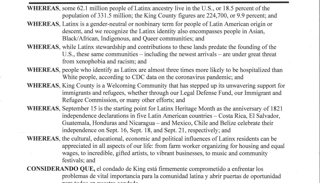 Executive proclamation for 2021 Latinx/Hispanic Heritage Month and events