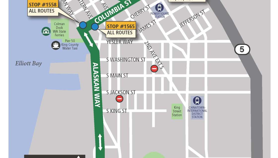 With the Alaskan Way Viaduct out of the way, we’re putting the finishing touches on Columbia Street, transforming the street to connect buses between Alaskan Way and Third Avenue – one of the nation’s busiest busways. Opening Feb. 22, the new bus connection will be smoother and more reliable, bypassing previous freight train delays in SODO. (View map here.). New bus stops also will be within a block of Washington State Ferries at Colman Dock and the Metro Water Taxi at Pier 50, and buses will now carry riders from the waterfront to the… Read More