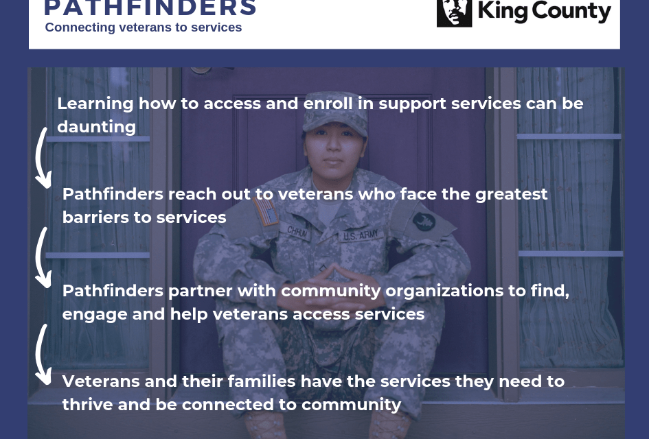 On July 30, King County Executive Dow Constantine announced a $7.5 million initiative that will provide specially trained Pathfinders and Navigators to connect more veterans, servicemembers, and their families to a network of supportive services. The community-based Pathfinders and Navigators will reach out to veterans, servicemembers, and their families throughout King County, focusing on those who face the greatest barriers, including veterans who are women, transgender, Native Americans, people of color, veterans who are experiencing homelessness, and their families. In addition to services, the Pathfinders and Navigators will connect veterans who experience… Read More