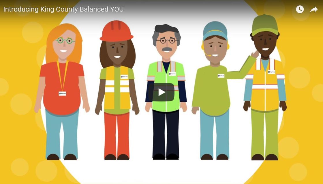 King County Executive Dow Constantine and Chief People Officer Whitney Abrams launched Balanced You last week, the successor to the County’s award-winning Healthy Incentives℠ program. Balanced You offers a variety of health and well-being tools to support employees so they can feel good, get the most out of life, and do their best work for the people of King County. Balanced You is built from the ideas and recommendations of employees across the County. Learn more about Balanced You in this short video and on the Balanced You website at KingCounty.gov/BalancedYou.