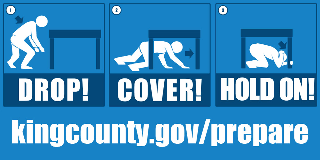 Though our region hasn’t felt a major earthquake in more than 15 years, we all need to be prepared for the next time the ground moves. That’s why King County encourages everyone to take part in the Great Washington ShakeOut on Thursday, October 19. At 10:19 a.m., or another time convenient to you, practice what you would do in an earthquake: DROP to the floor Take COVER under a desk, table, or other sturdy furniture and protect your head HOLD ON until the shaking stops. FMD will announce the earthquake drill in many King County buildings, and we encourage you… Read More