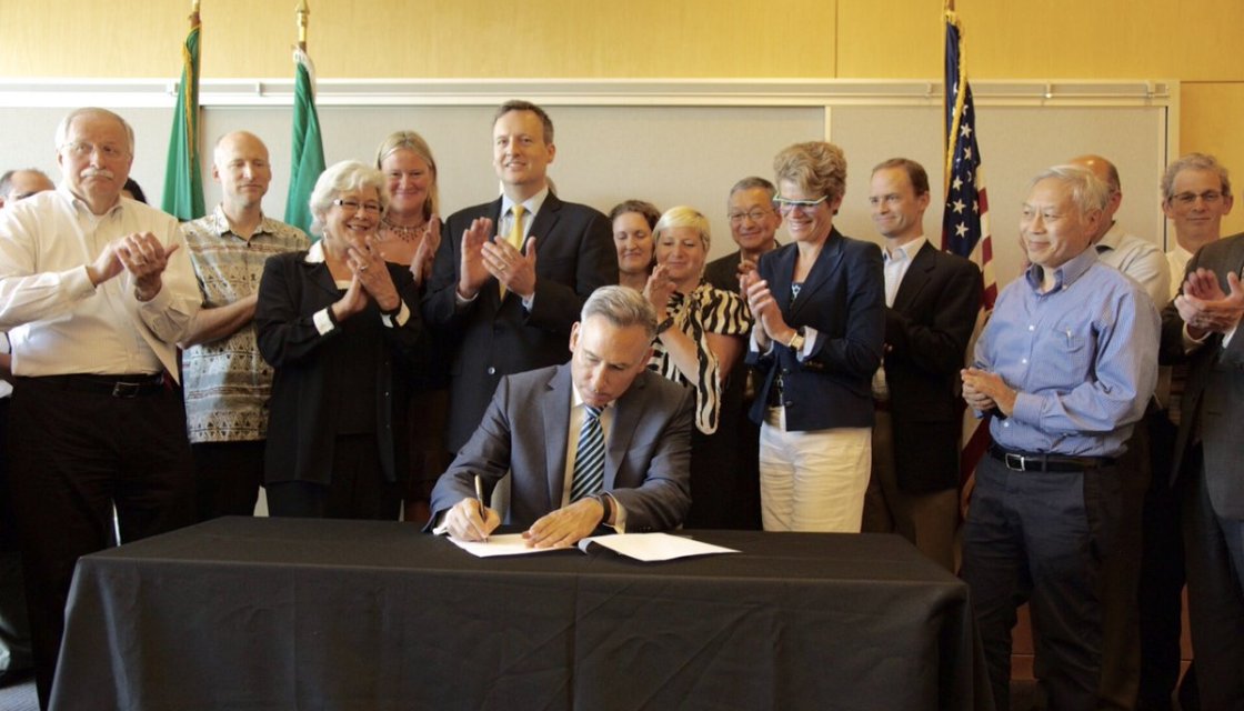 With rents and housing prices out of reach throughout the region, King County Executive Dow Constantine today joined with County Councilmember Dave Upthegrove and housing advocates to sign legislation to invest up to $87 million for creation of more than 1,000 units of affordable workforce housing near new or existing transit stations. “Today, we celebrate landmark legislation to create vibrant, mixed-income neighborhoods with affordable housing near transit centers,” said Executive Constantine. “It’s an innovative approach to connect more communities across King County to jobs and opportunity.” Read more in the official press release.