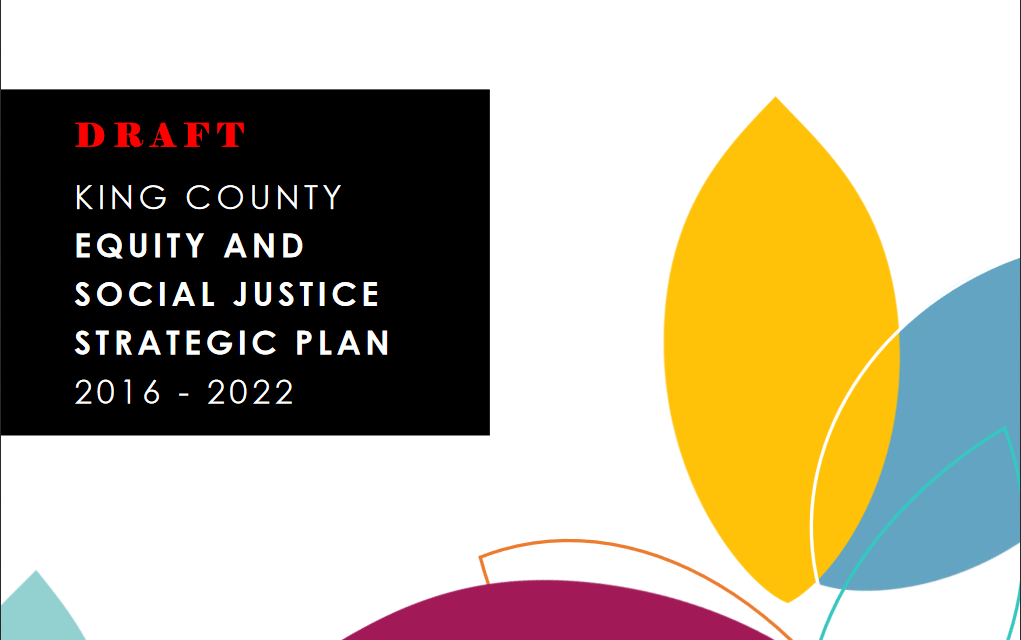 We are proud to share with you our draft King County Equity and Social Justice Strategic Plan, 2016-2022. This plan, our first for Equity and Social Justice (ESJ), builds on the good work that we have been doing in ESJ and pushes us to become even more thoughtful, strategic and effective. This Plan also lays out the values that we have co-created with employees and community partners and addresses the need to be inclusive, collaborative, responsive, adaptive and people-focused. Fundamentally, we are moving towards becoming a racially just organization. Our ESJ strategies… Read More