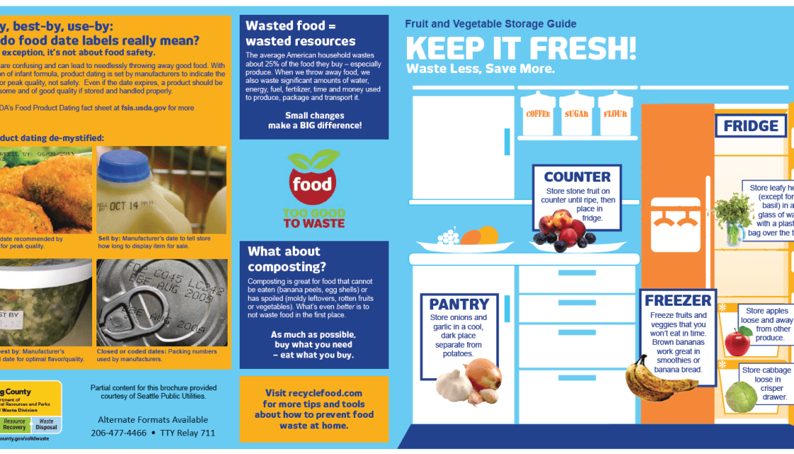 With the farmer’s markets season in full swing, King County’s Solid Waste Division offers several tips on how to smartly store food, reducing waste and keeping items fresher longer. The food items wasted most are fresh vegetables and fruit. This is typically because we have bought too much or didn’t use it in time. By storing fruits and vegetables for maximum freshness, they will taste better and last longer, helping you eat more of them before they spoil. When buying, choose fresh foods that freeze well if there’s a chance you won’t get… Read More